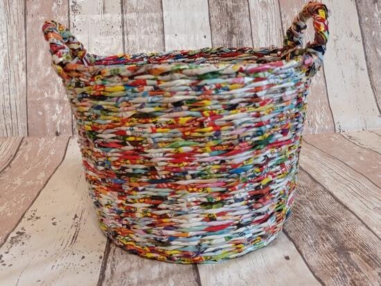 Koszyk wykonany z ulotek. Multicolor. ...