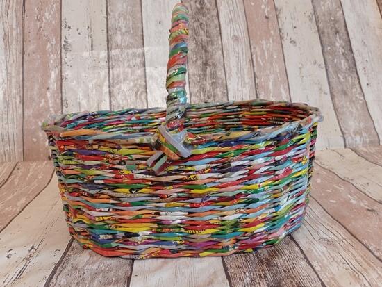 Średni koszyk wykonany z ulotek . ...