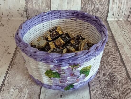 Miseczka z papierowej wikliny. Ozdobiona...