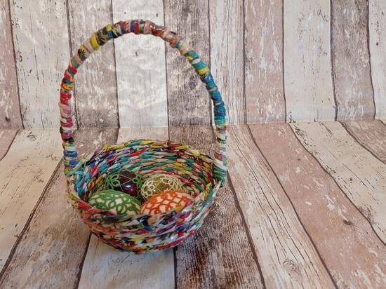 Koszyczek wielkanocny wykonany z gazet ...