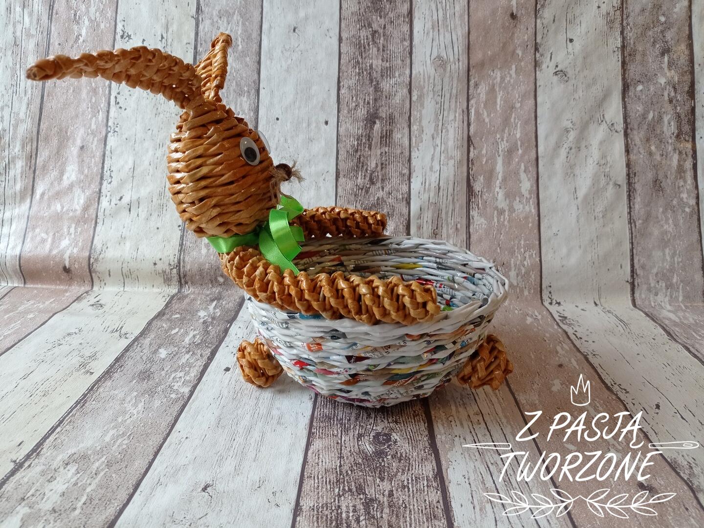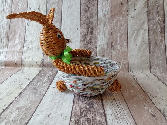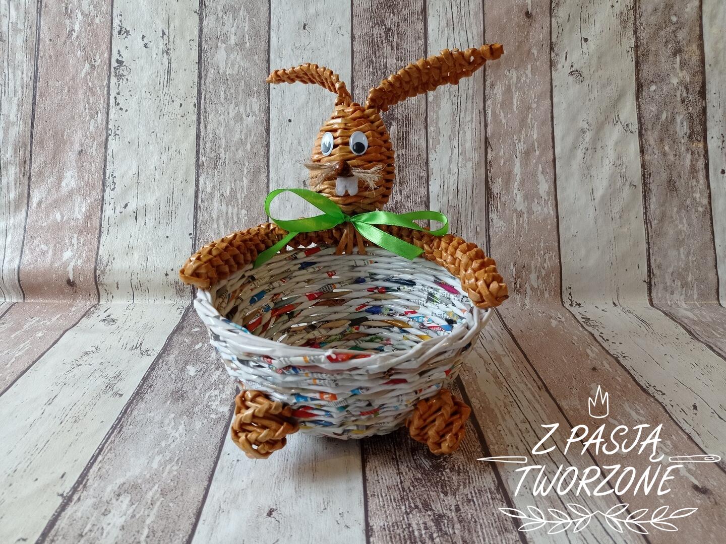 Koszyk z katalogu, królik z nieaktualnej gazety codziennej - recykling papieru.