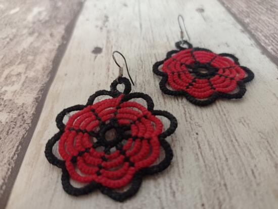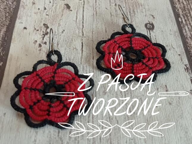 czerwwone kolczyki frywolitkowe z czarną obwódką