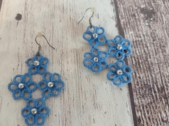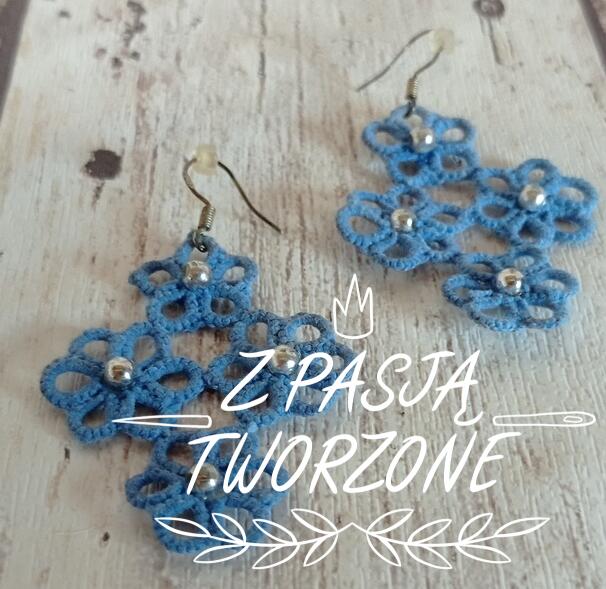 Kolczyki wykonane techniką frywolitki (koronka dworska).