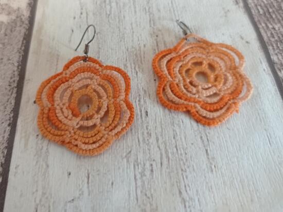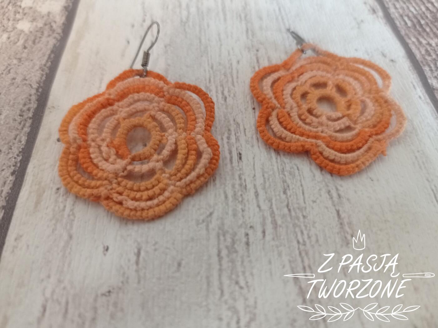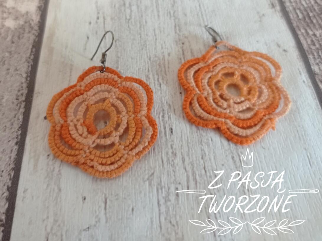 Kolczyki wykonane techniką frywolitki (koronka dworska).