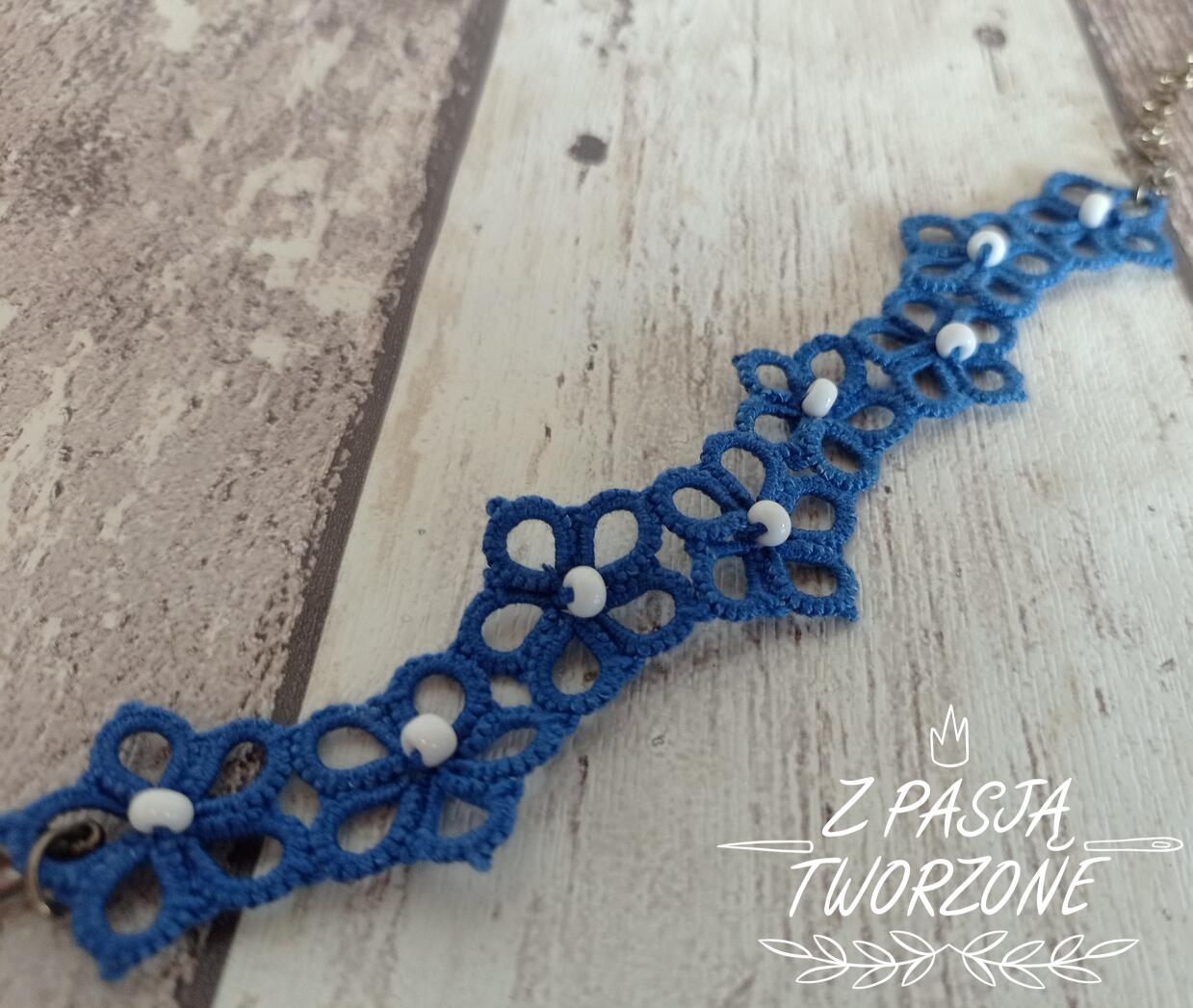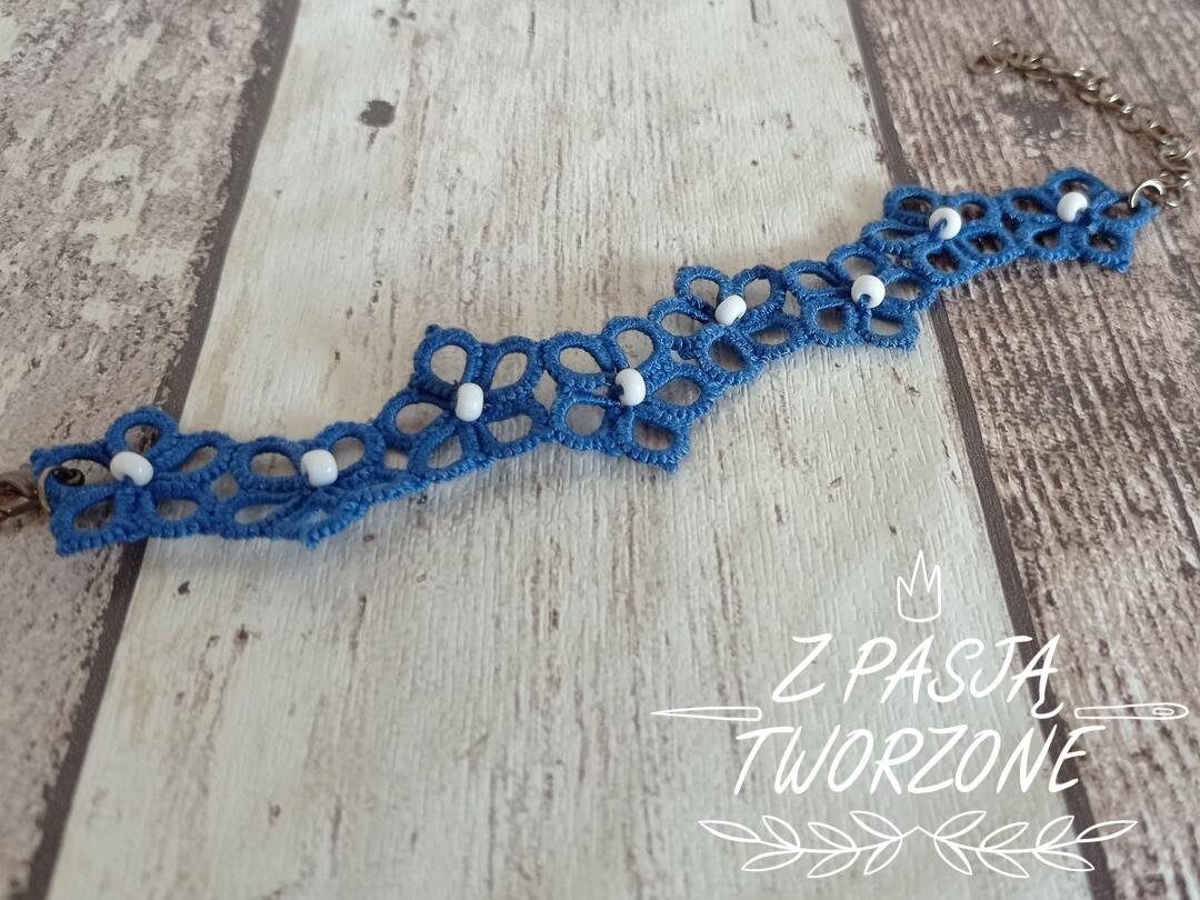 Bransoletka niebieska kwiatki z białymi koralikami