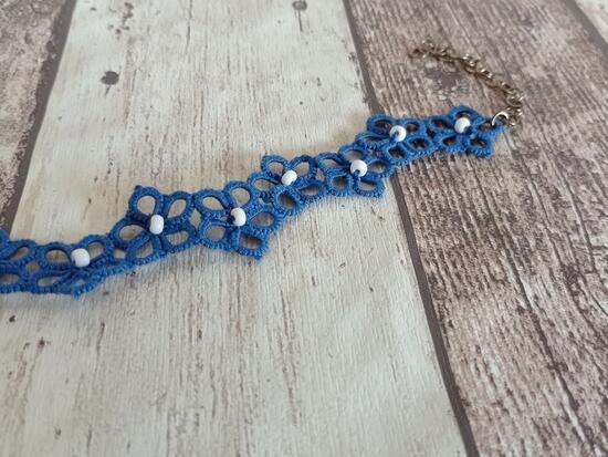 bransoletka wykonana techniką frywolitki (koronka dworska)