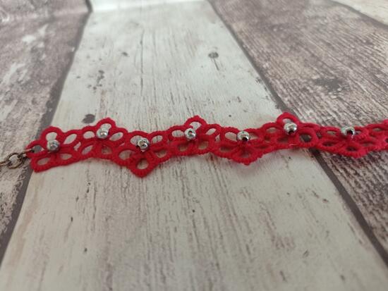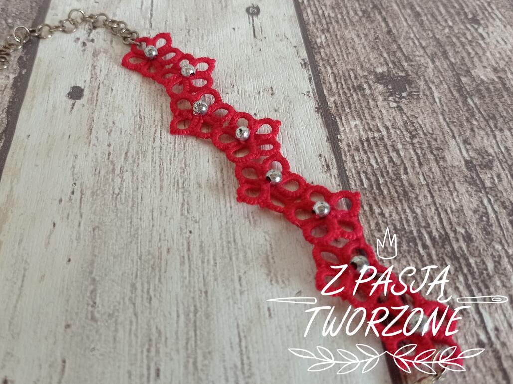 bransoletka wykonana techniką frywolitki (koronka dworska)