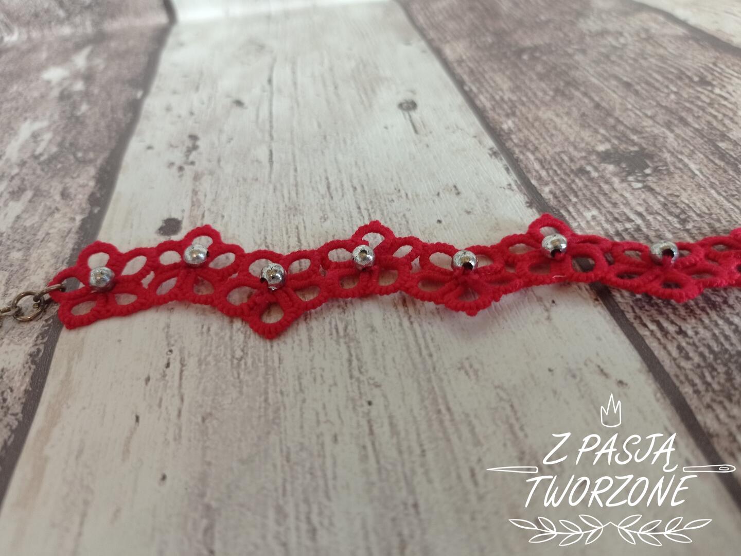 Bransoletka czerwona kwiatki z srebrnymi koralikami