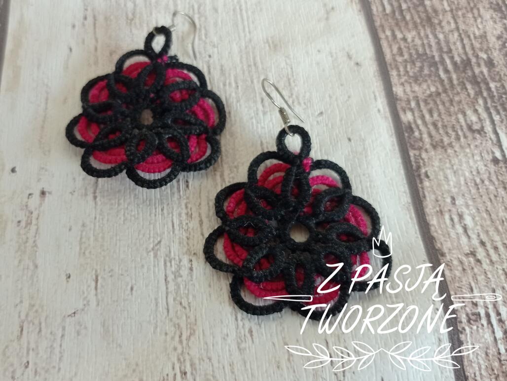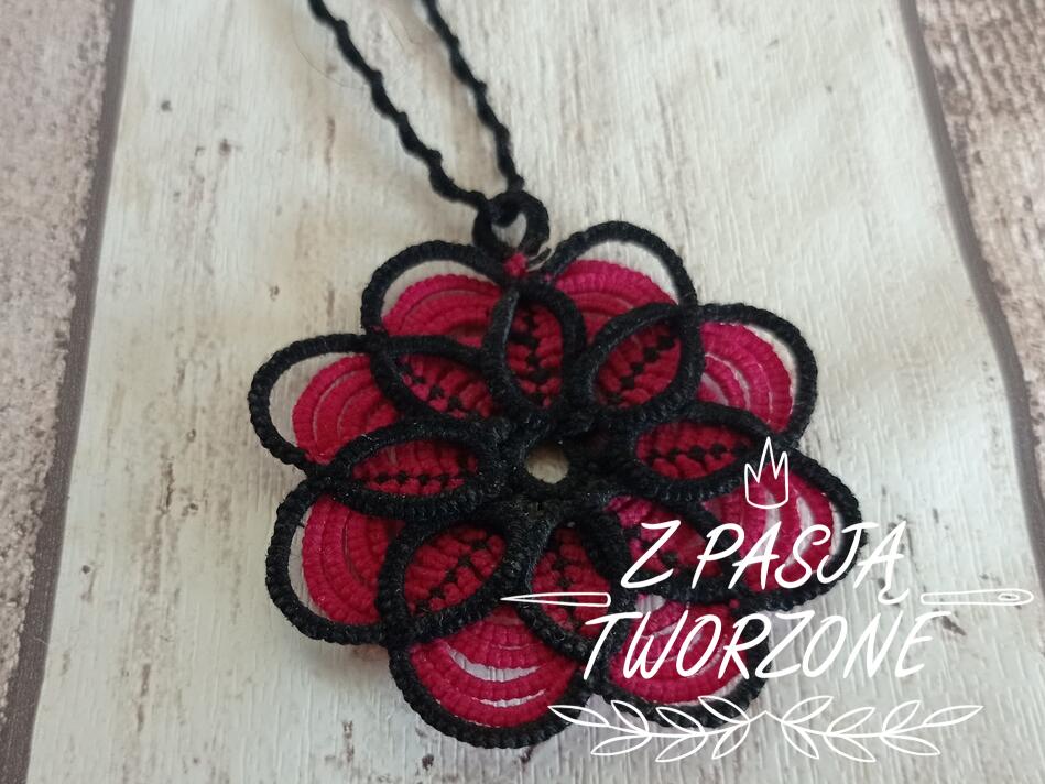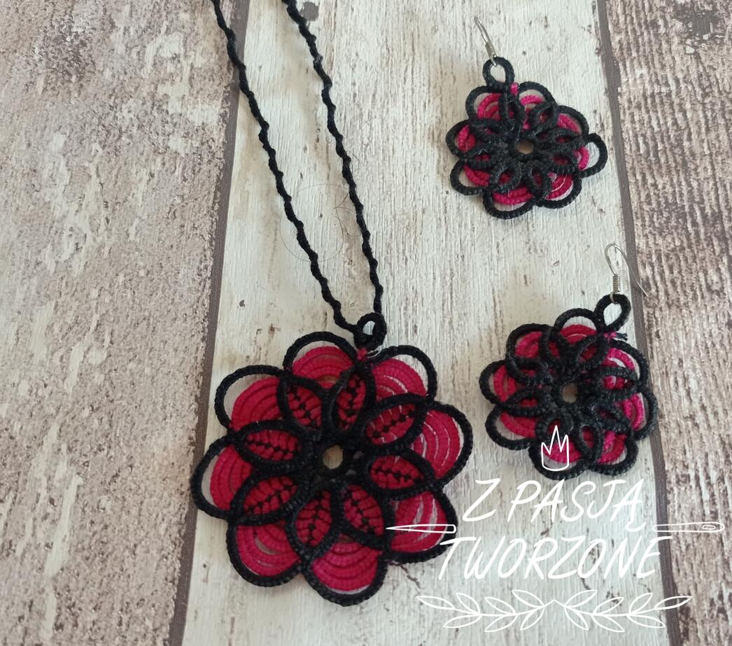 Komplet "czarno - czerwone" Kolczyki i naszyjnik warstwowy