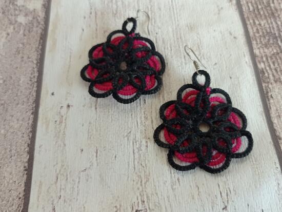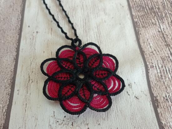 Komplet wykonany techniką frywolitki (koronka dworska)